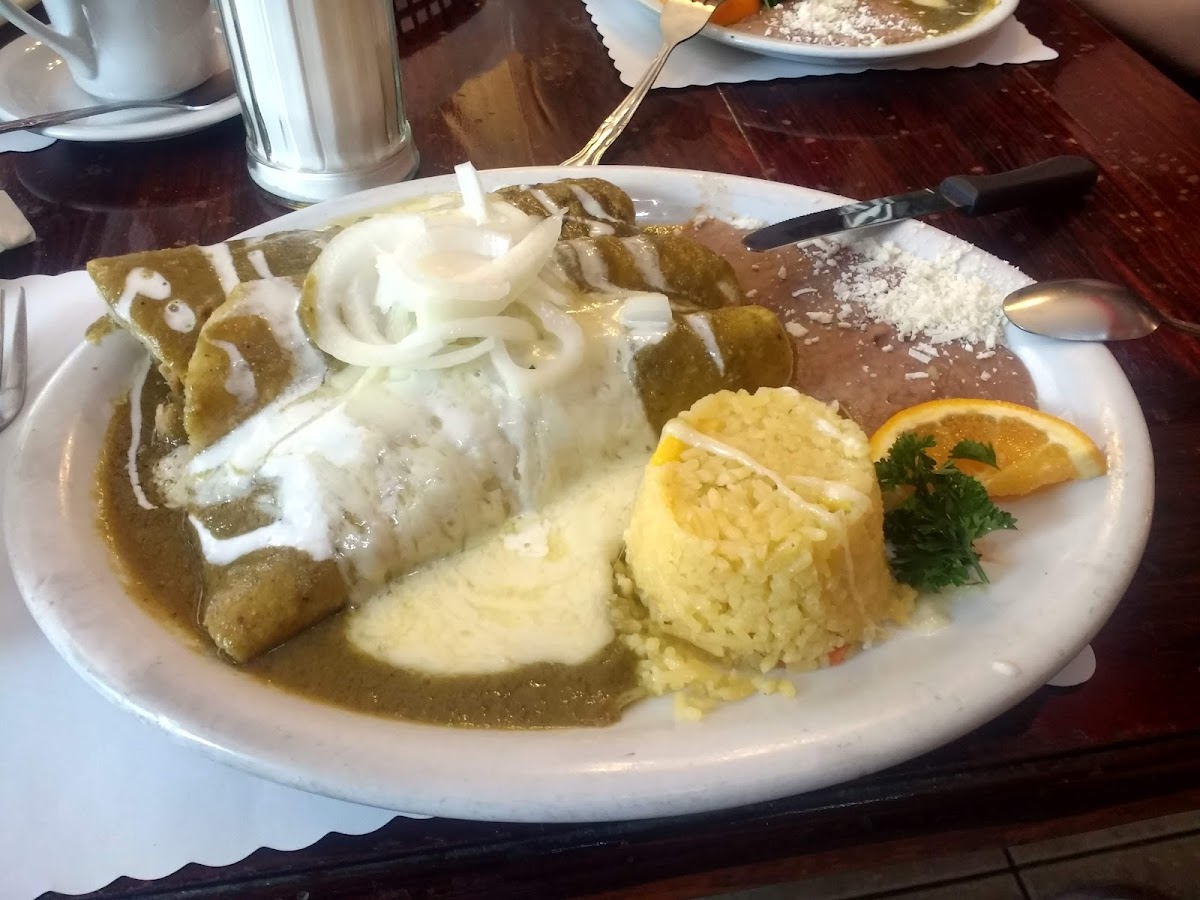 Lots of parking on both sides of the street for convenience for starters. The restaurant itself is very nice and even had a piano player. Breakfast and dinner menu is available all day. Enchilada is really good along with the tacos de camaron enchilados. The cafe de olla is addicting but they have regular coffee, fresh juices, smoothies, hot chocolate, even beer and cocktails. They have their own beer and tequila as well